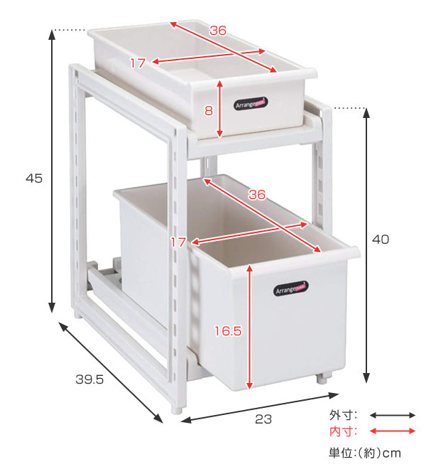 ●シンク下を使いやすくし、スッキリと収納できる2段ストッカーです。