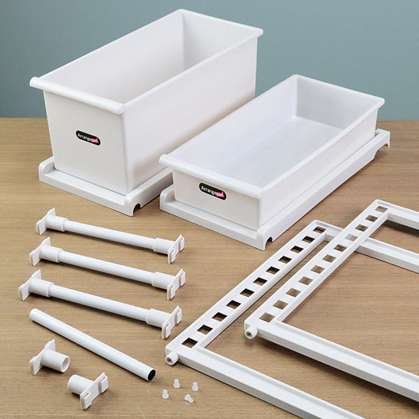 | 材質 | サイドフレーム・フック:ポリスチレン トレー:ポリプロピレン その他・パイプ:鉄(ABS樹脂コーティング) すべり止め:シリコーンゴム |