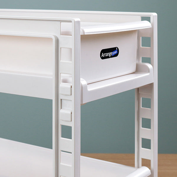軽い力で片手で簡単に引き出せるスライド式ですが、勢い余ってストッカーごと落ちてしまわないようにストッパーが付いているので重たい物を収納していても安心してお使いいただけます。