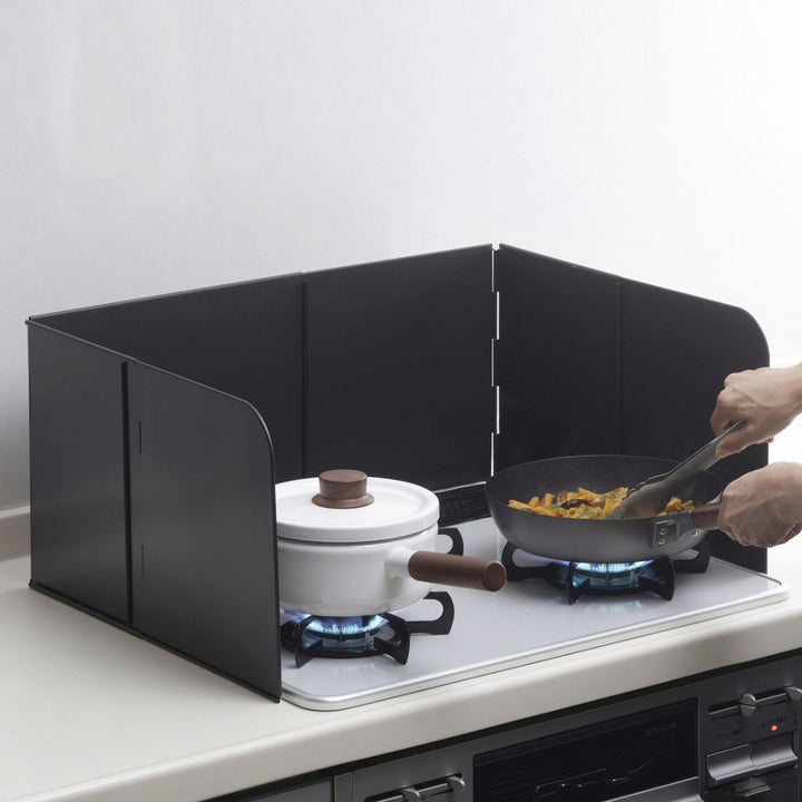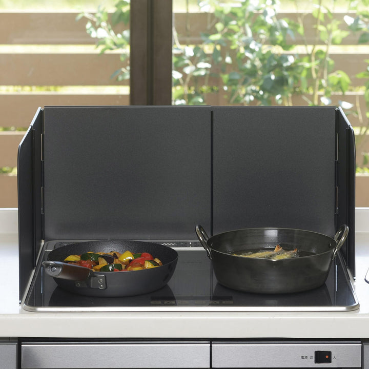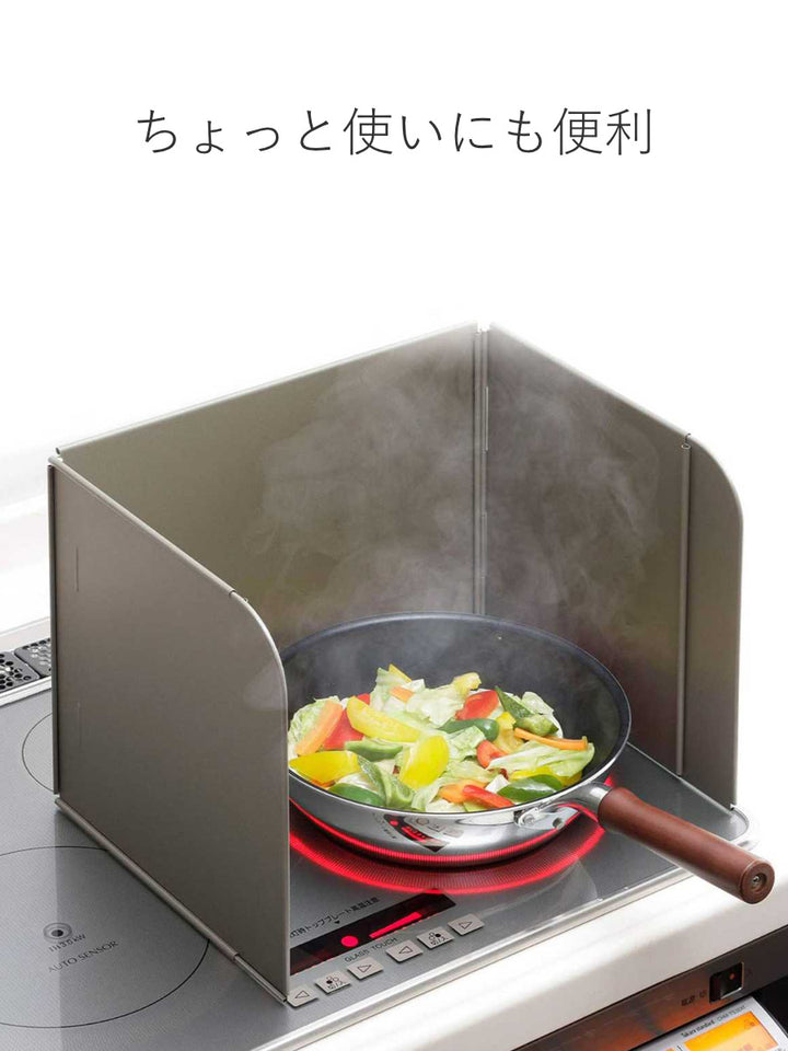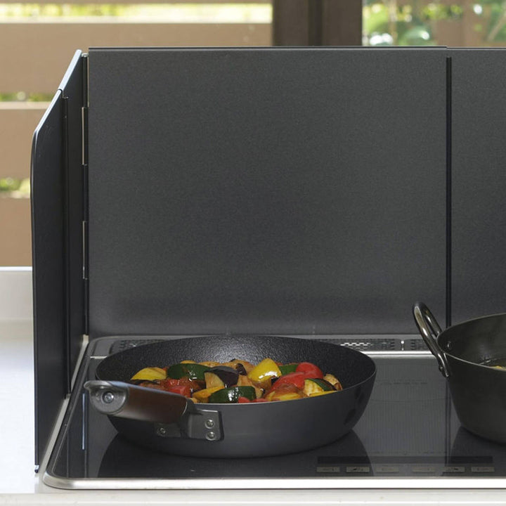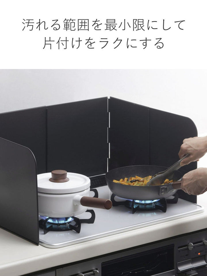 レンジガードを立てることで油はねの範囲は最小限に。コンロ周りはもちろん、壁に付着する汚れの量も減らすことができ、キッチン掃除がラクになります。
