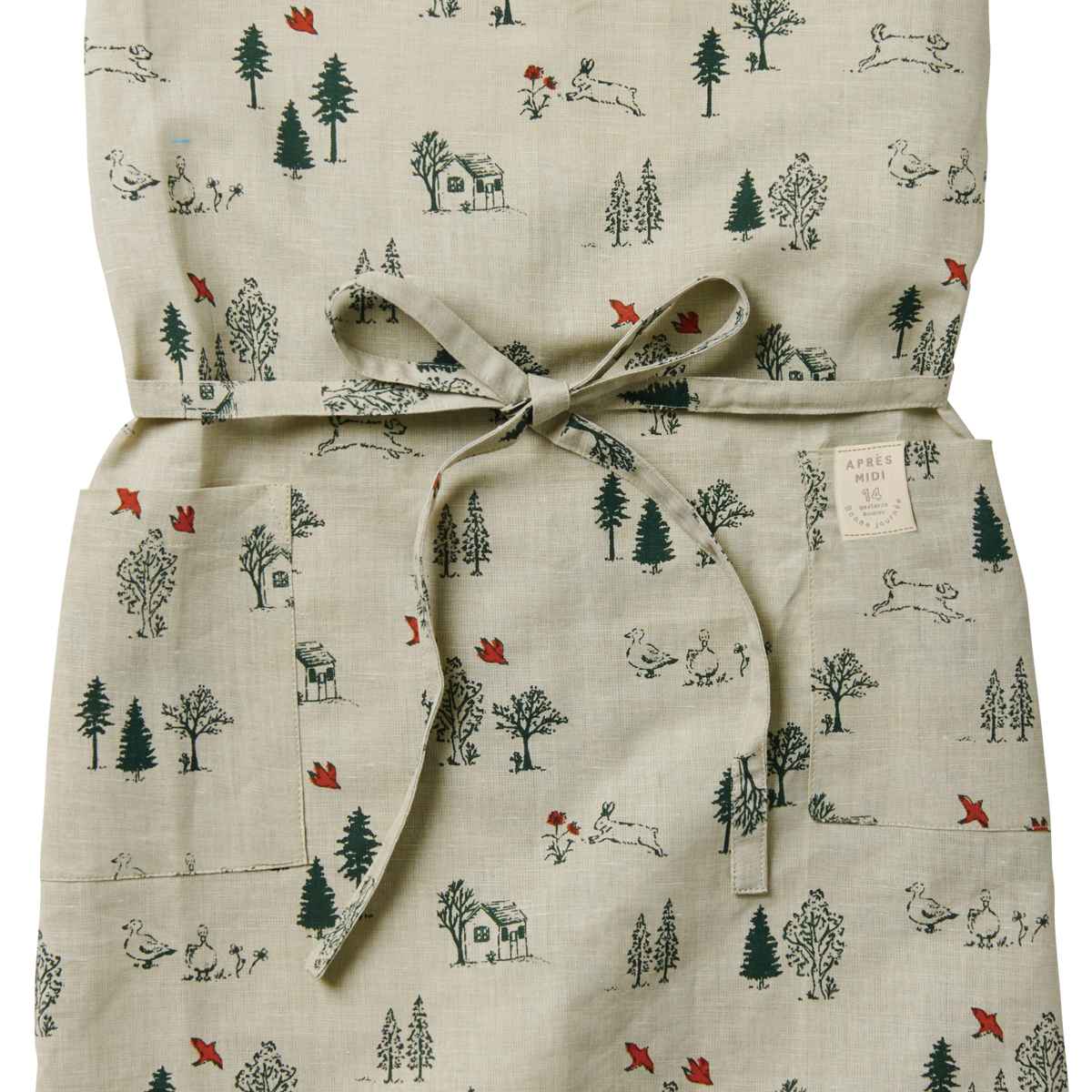 ヨーロッパのヴィンテージテイストを意識したデザインで、ゆったりとした午後の時間を大切に過ごす女性をイメージした「アプレミディシリーズ」のエプロンです。綿と麻の混合素材が使用されているので、サラッとした優しい手触りで付け心地が良いです。また、手書きのランドスケープ柄がキッチン周りをおしゃれに魅せてくれます。男女問わずファッション感覚で着れるエプロンなので、ご家族で使い回すこともできます。お気に入りのエプロンで日々のお料理をもっと楽しくしてみませんか。