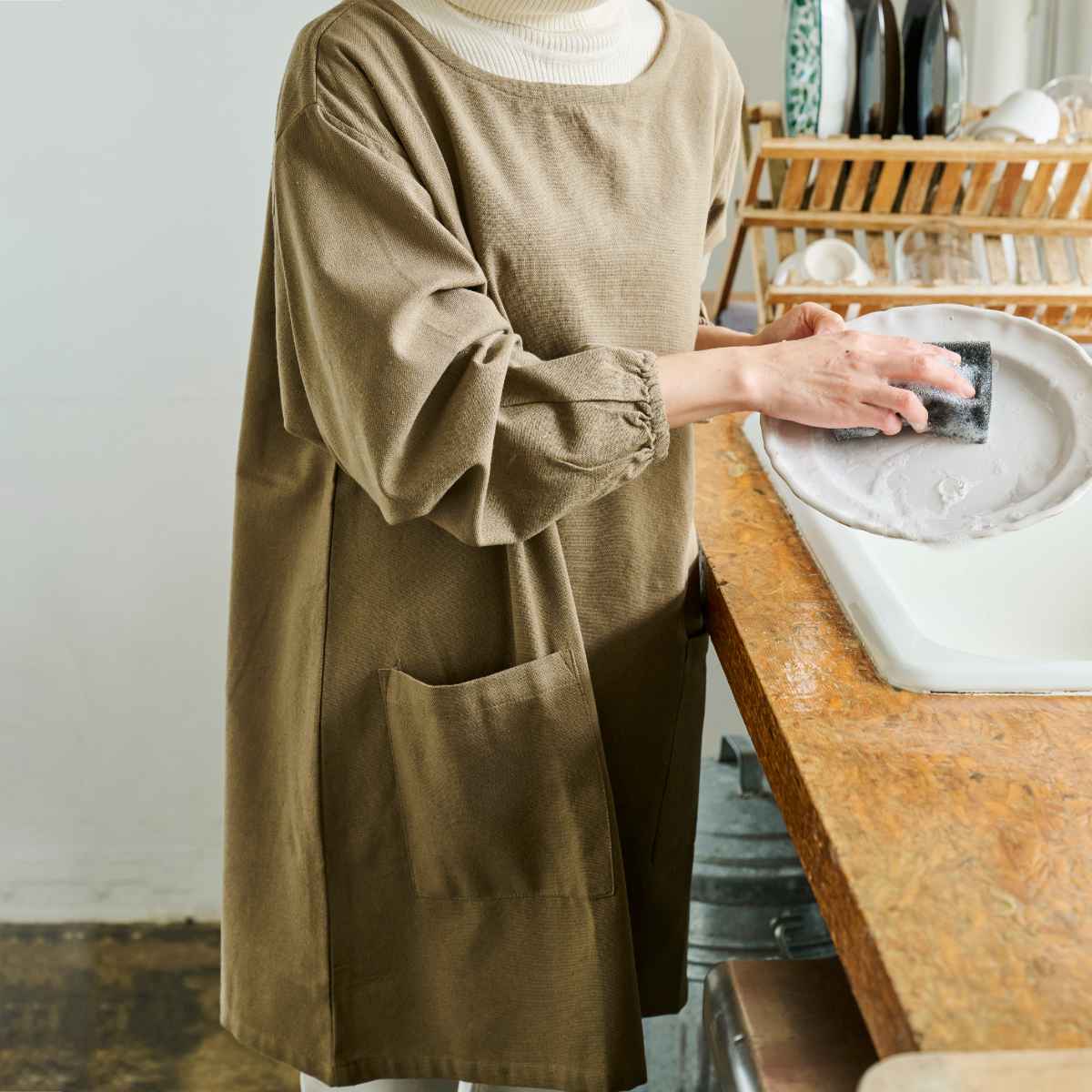 「私の仕事着」をコンセプトとしたUNIFORM OF THE DAY。しわや多少の汚れも気にならない、雑に扱ってもそれが私らしい。お料理中だけでなく、DIYやガーデニングなどでお使いいただくのもおすすめです。