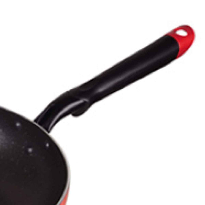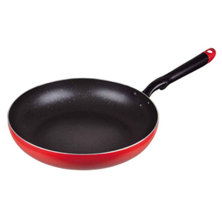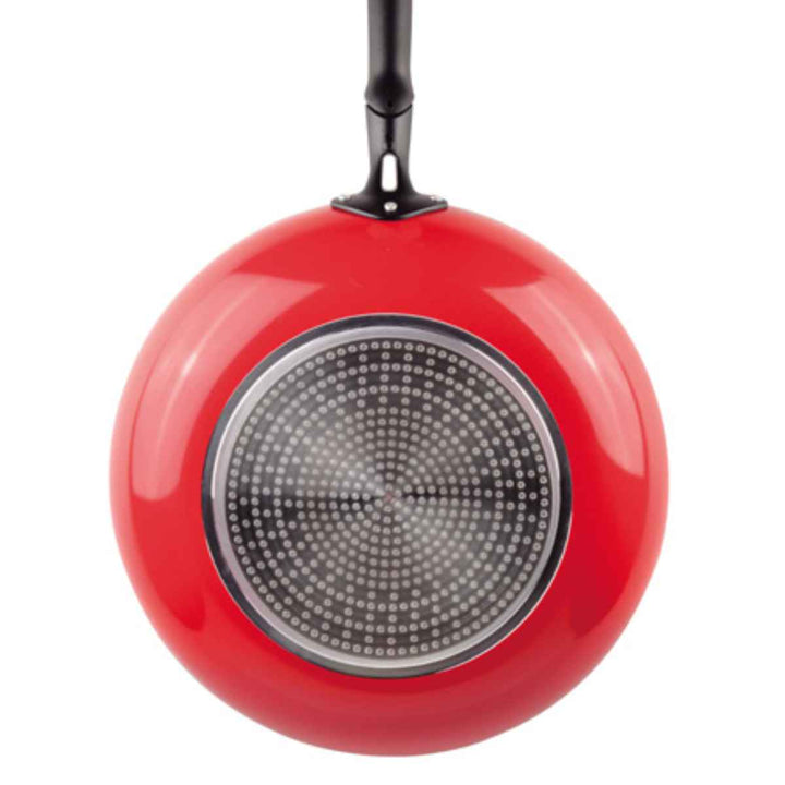 赤色の大きなフライパンは、調理中だけでなく、使用していないときでもキッチンの主役になります。鮮やかな赤の背景によって、焼き魚やステーキ、彩り野菜の色がいっそう引き立ち、いつもの家庭料理がまるでレストランの一皿のように格上げされます。