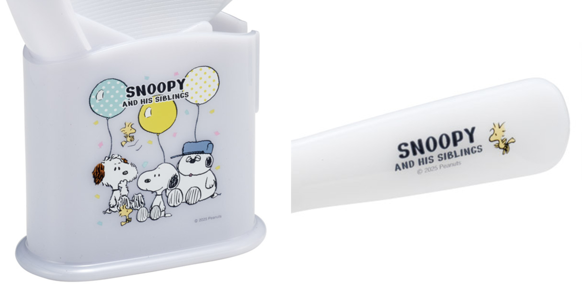 しゃもじとケースには、スヌーピーの仲間たちの可愛いイラストが描かれており、キッチンに置くだけで楽しい雰囲気に。しゃもじの持ち手にもさりげなくデザインされていて、使うたびにほっこりした気分になれます。