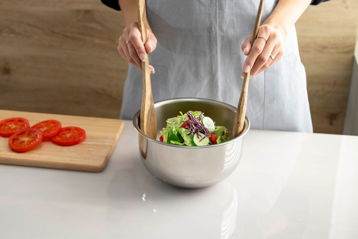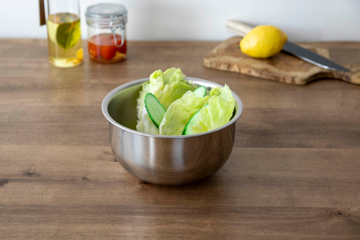 シンプルで使いやすいステンレス製サラダミックスボウルです。サラダを混ぜ合わせたり、生地やミンチをこねるのに使いやすいサイズです。