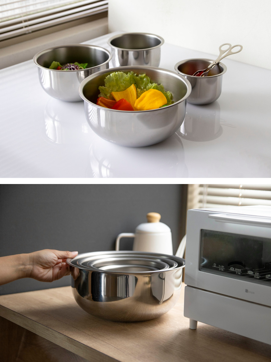 シンプルで使いやすいステンレス製サラダミックスボウルです。サラダを混ぜ合わせたり、生地やミンチをこねるのに使いやすいサイズです。
