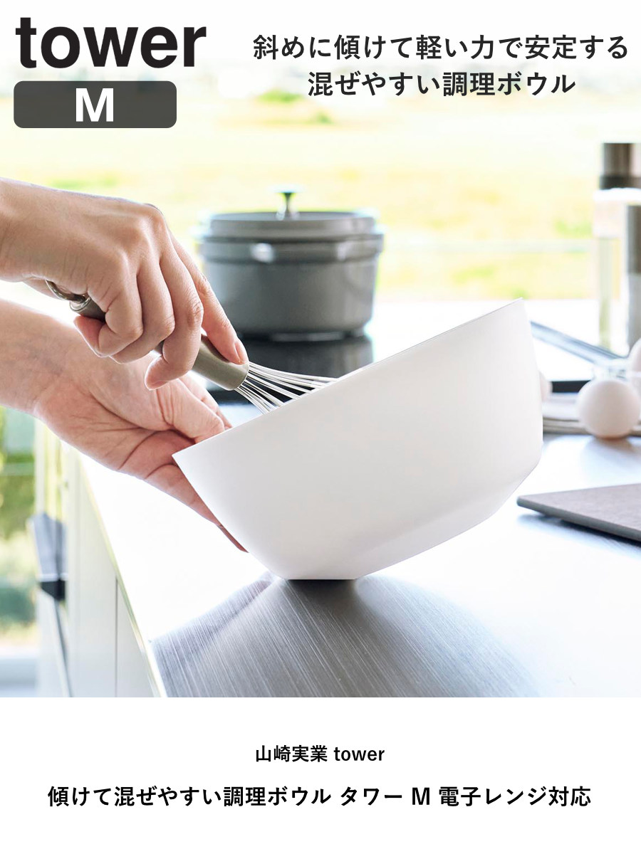 山崎実業 tower 傾けて混ぜやすい調理ボウル タワー M 電子レンジ対応