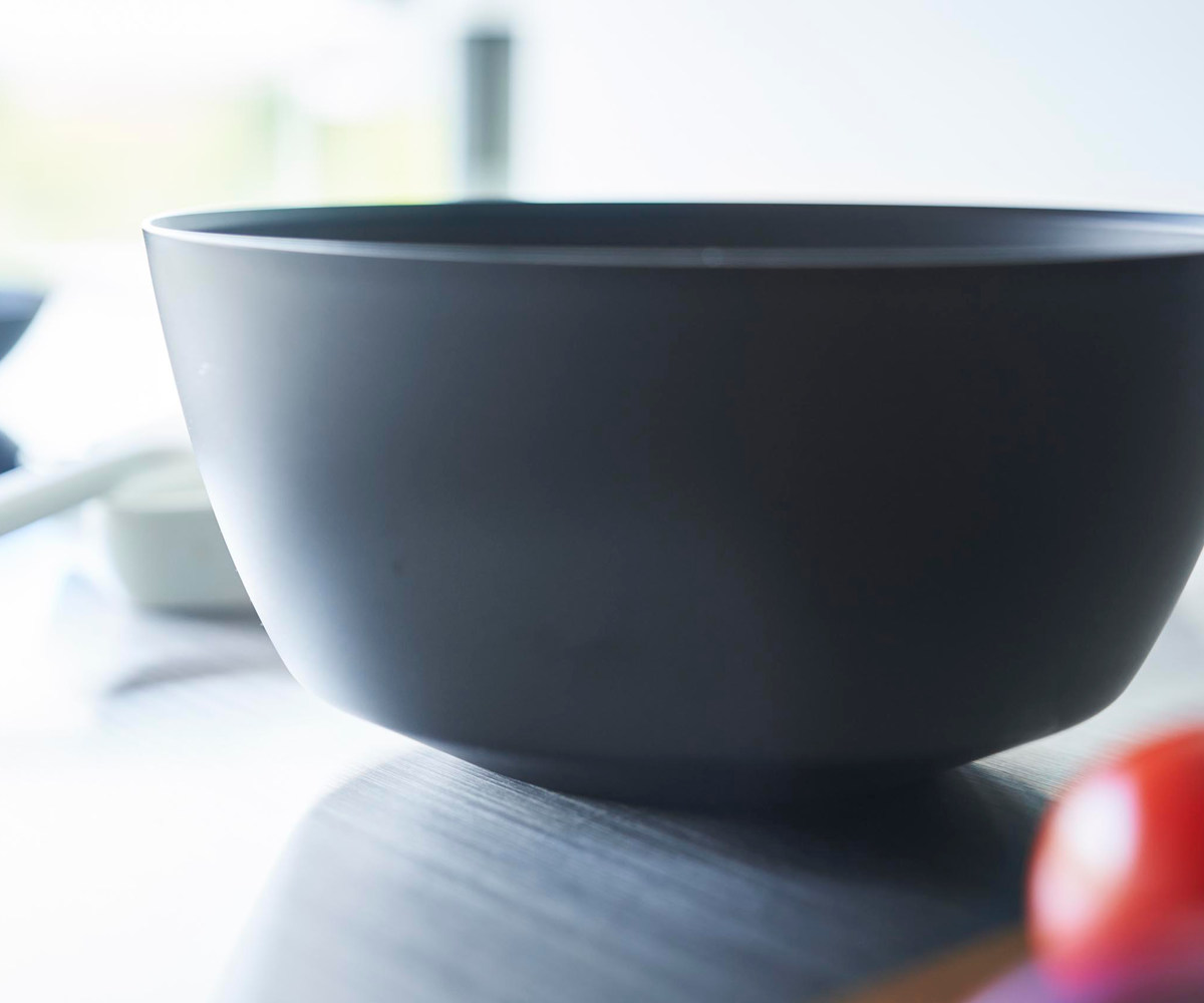ボウルを倒した時に斜めをキープできる構造で、食材が混ぜやすく手が疲れにくい調理ボウルです。料理の下ごしらえからお菓子作りなど毎日使う調理ボウルだからこそ使いやすさを追求しました。