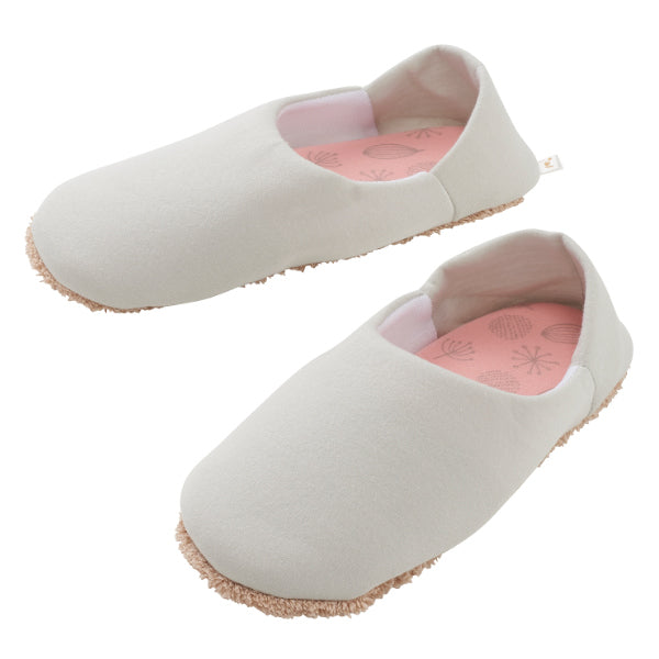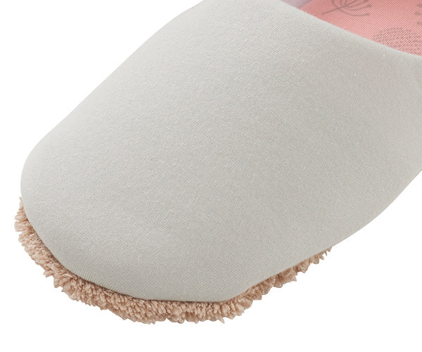 裏面が立体構造のマイクロファイバーになっていてるので履くだけで、汚れを落としホコリやチリなどをしっかり絡め取るルームシューズです。お掃除面が目立ちにくいデザインでバブーシュタイプのルームシューズなのでサッと履くときはかかとを踏んで履けて、かかとを立てて履くことで脱ぎにくくなり二通りの履き方ができます。