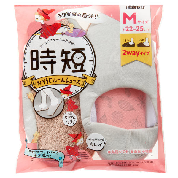 おそうじルームシューズ M スリッパ 掃除 洗える 床掃除 モップ ルームシューズ 22~25cm かかと付き