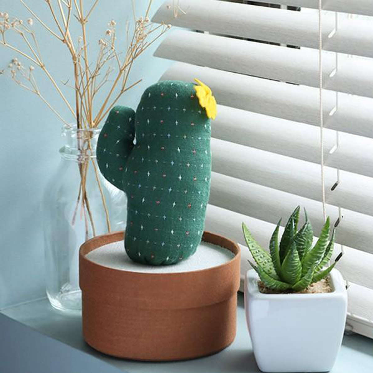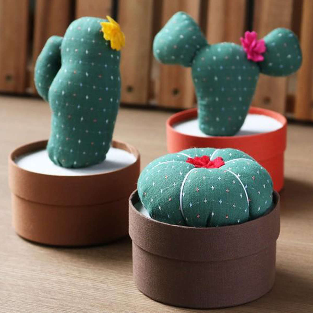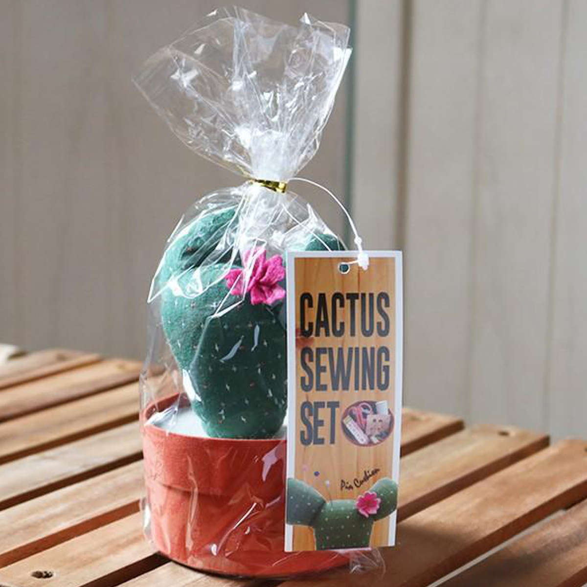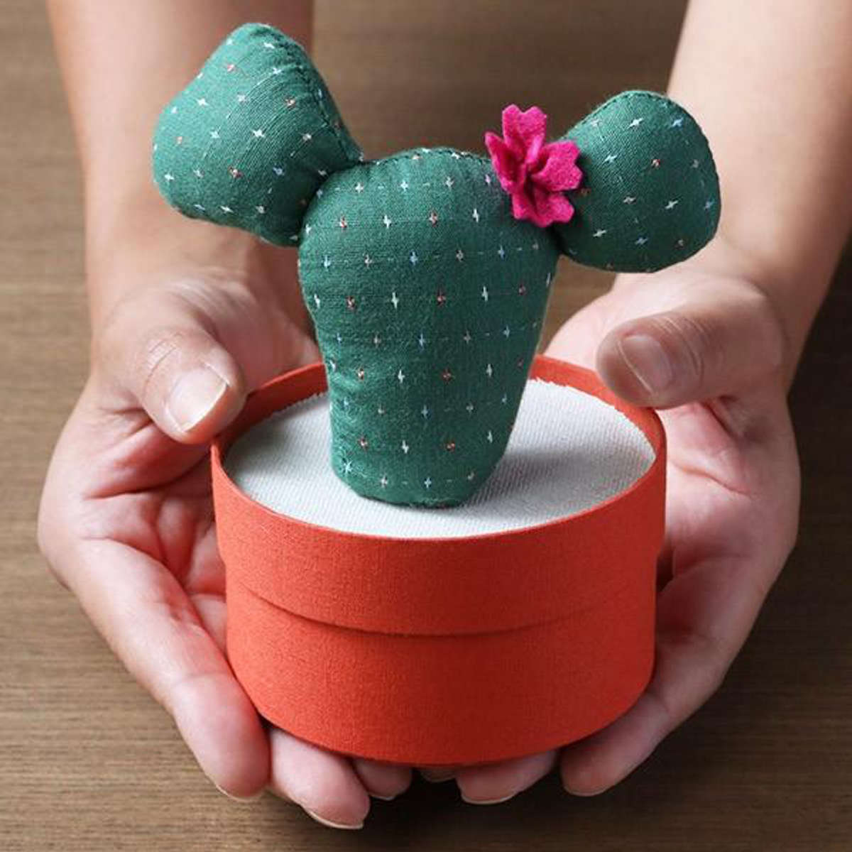 サボテン部分はピンクッションになり、ポット部分にはソーイングセットがセットされているので、ボタン付け程度の簡単な作業ができます。マチ針を刺すことでトゲトゲのサボテンが完成します。