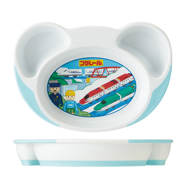 プラレールのイラストが描かれたカラフルなランチプレートです。