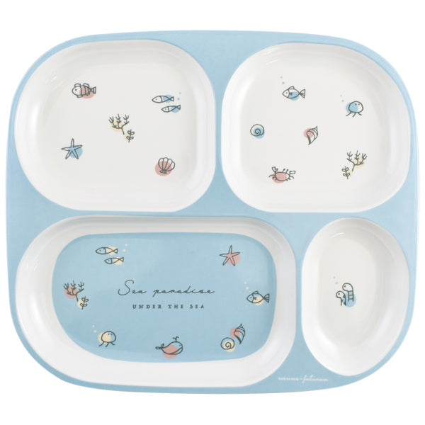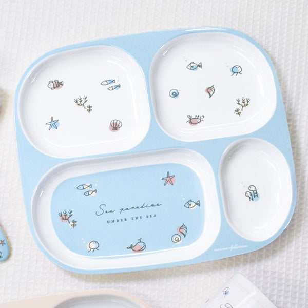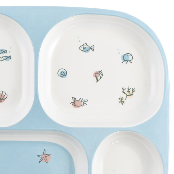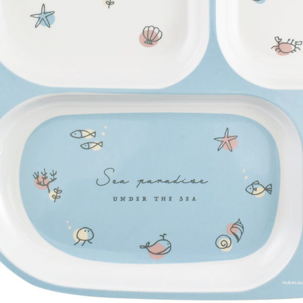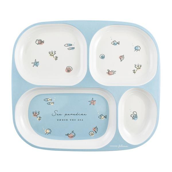 淡いパステルカラーにたくさんの海の生き物たちがデザインされたメラミンプレートです。ハンバーグやオムライス、副菜をワンプレートに盛り付けて、レストランのお子様ランチのような気分を味わうことがでます。軽くて、落としても割れにくい樹脂製なので、お子さまの日常使いに最適です。ご自宅で使うのはもちろん、ピクニックやキャンプなどのアウトドア食器として使うのもおすすめです。
