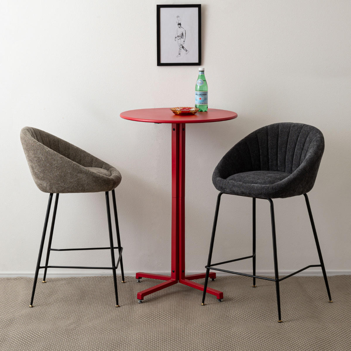 丸いフォルムが身体を包み込んで、快適な座り心地を提供してくれます。細身のスチール脚はスッキリとした印象を与えてくれます。高さのあるハイチェアですがお部屋に圧迫感を与えません。
