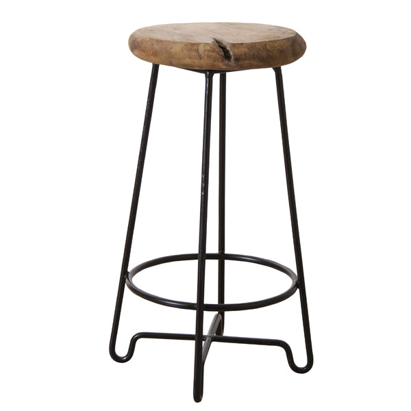 アイアンの黒いフレームにデザイン性を持たせ、無垢材チークと組み合わせたハイスツールです。チーク材そのものの形や質感が最大限に生かされていて、自然の風合いを感じていただけます。インダストリアル、モダン、スタイリッシュ、などの雰囲気のお部屋と幅広く合わせて頂けます。