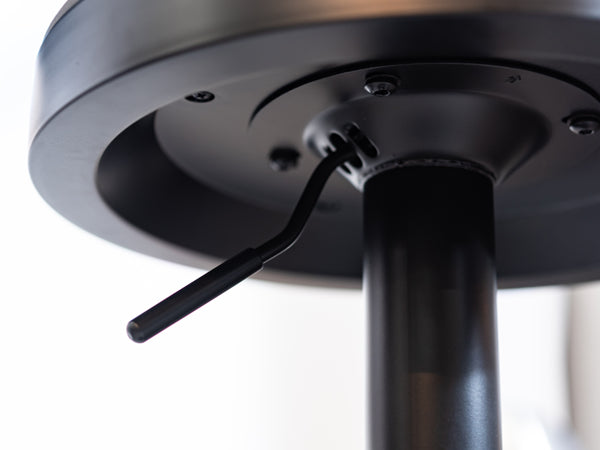 座面下のレバーで座面の高さを調節することができます。また、座面部分が回転するので体の向きを変えやすい仕様になっています。