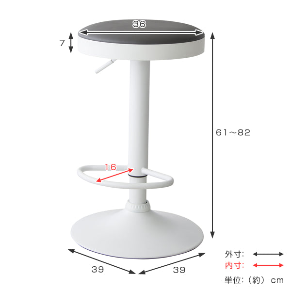 ハイスツール 座面高61~82cm スツール 高さ調節 昇降式 レザー調 モノトーン 椅子