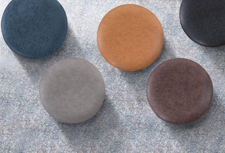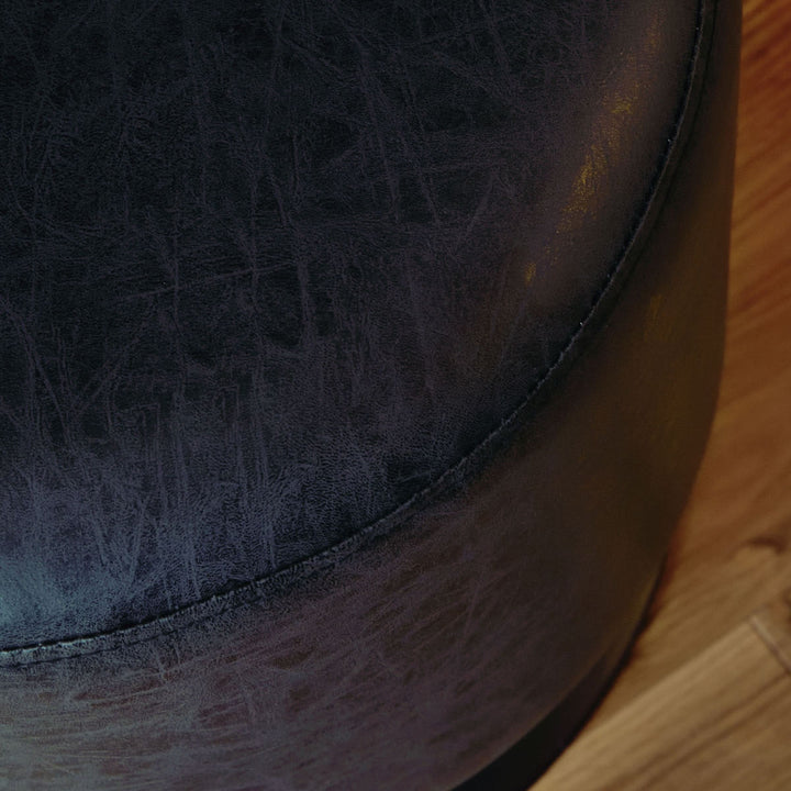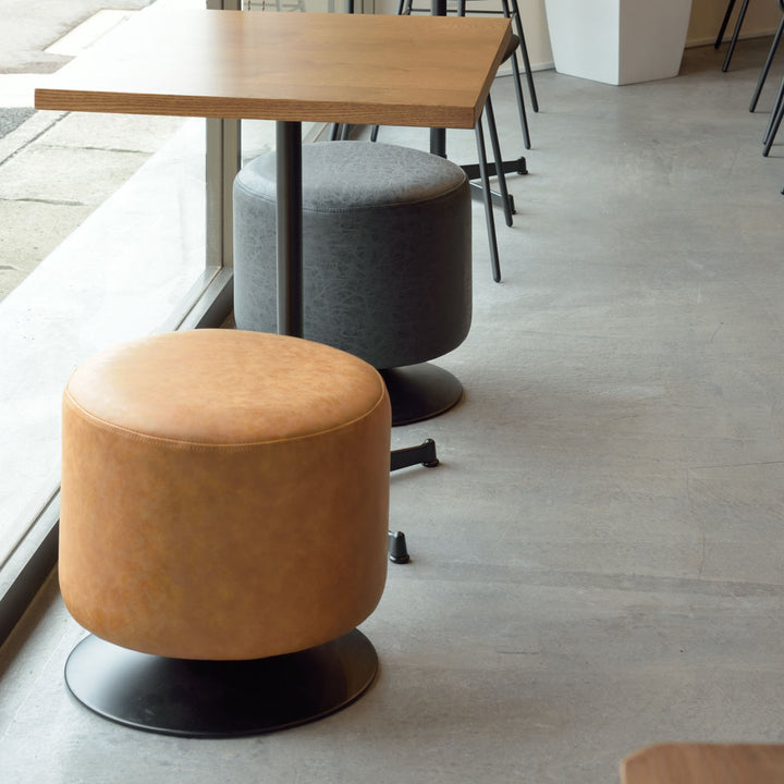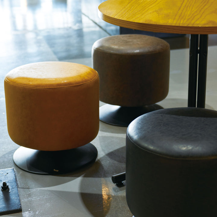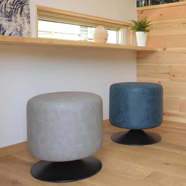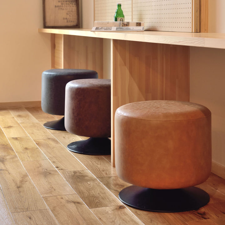 ころんと丸みのあるラウンドスツールです。ソフトレザーの質感としっかりとした座り心地のよい座面で、ゆったり、まったり、リラックスタイムを過ごせます。