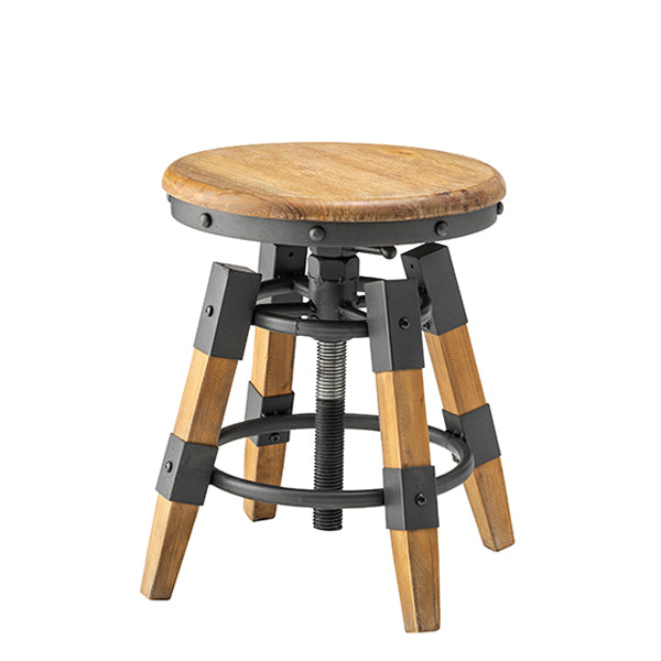 高さ調節ができるナチュラルテイストのスツールです。素朴な風合いの木材と無骨なスチールを組み合わせた高いデザイン性で、様々な場所でご使用いただけます。