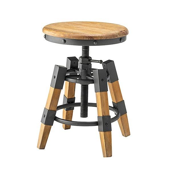 スツール 高さ58.5cm 高さ調整 昇降機能 木製 天然木 椅子 丸型 イス