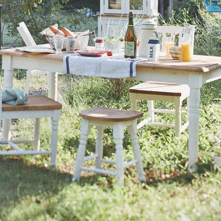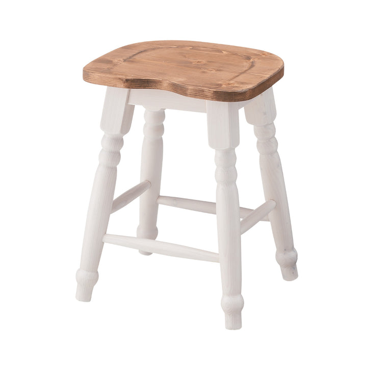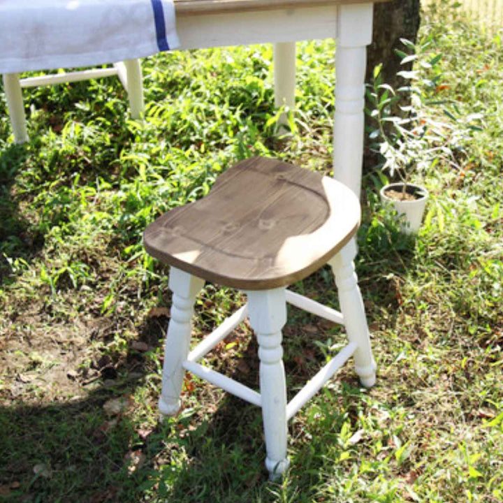 天然木を使用したカントリー調のスツールです。カントリー調のフォルムがキュートで明るく楽しい時間に。