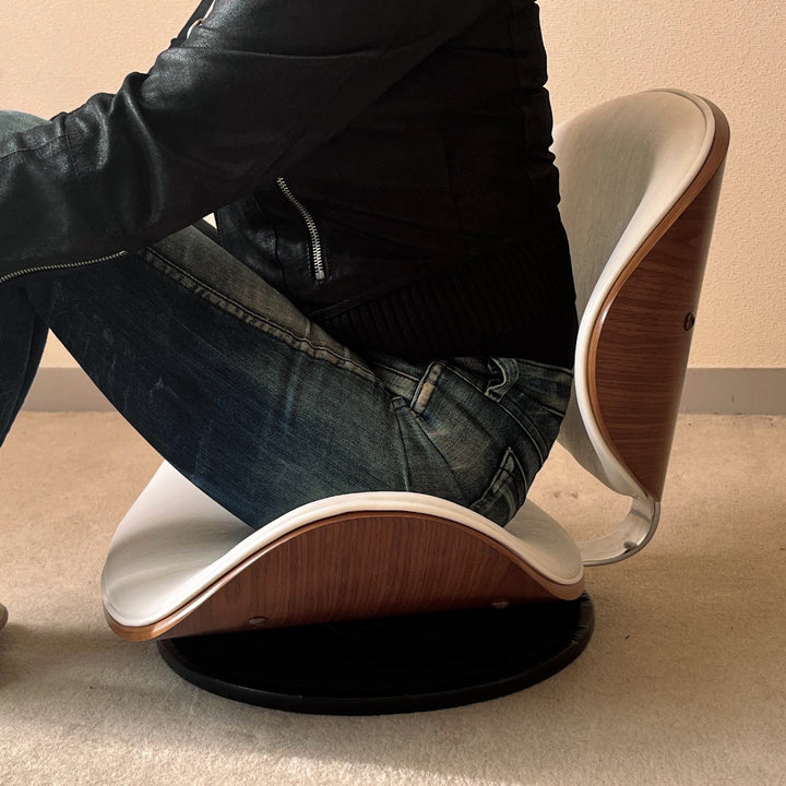 体を包み込むような曲線は、座り心地とデザイン性を兼ね備えています。1950年代を中心に生み出されたミッドセンチュリー家具、その中でも人気の高いイームズチェアをイメージして作られています。ローテーブルにも合わせやすい座椅子として、現代のインテリアと組み合わせても違和感なくレイアウトできます。
