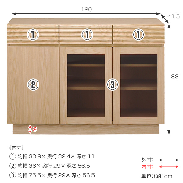 サイズ 約 幅120×奥行41.5×高さ83(cm)
