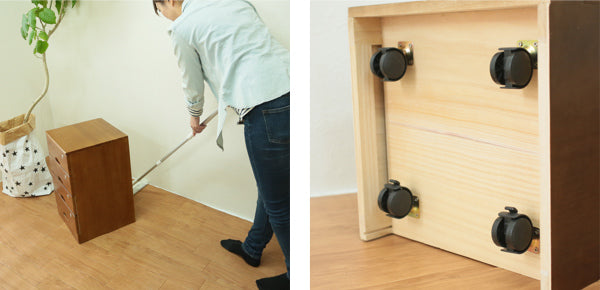 ●隠しキャスターが付いているので、移動が簡単にできるので、掃除や模様替えの時にとても便利です。
