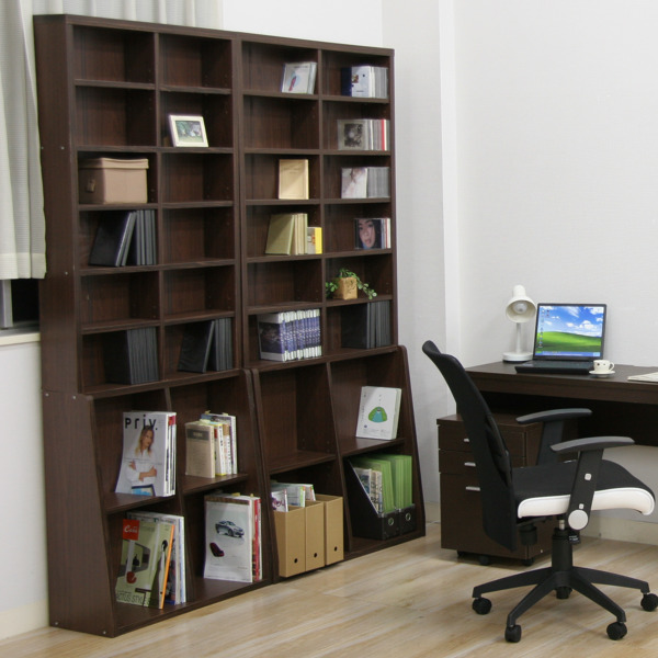 薄型の上段には文庫本やコミックなどを、下段には雑誌や写真集、図鑑などの大判書籍を収納することができます。土台が広がる事で安定感もアップし、安心して収納していただけます。