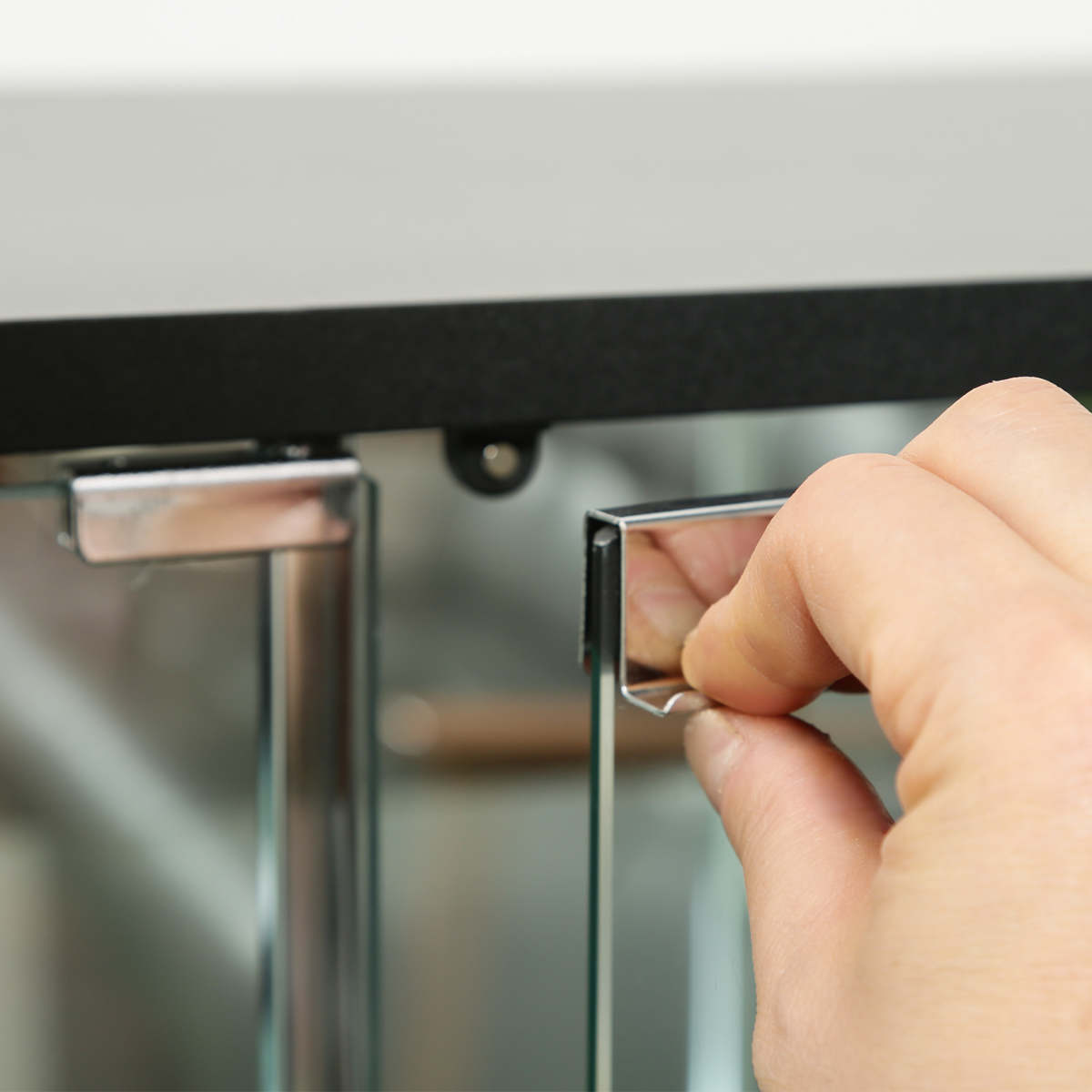 マグネットで開閉がしやすく、中のものを取り出しやすい大きな扉が付いています。扉は3枚ついているため、全面開くタイプに比べ、ホコリの侵入を最小限に抑えることができます。