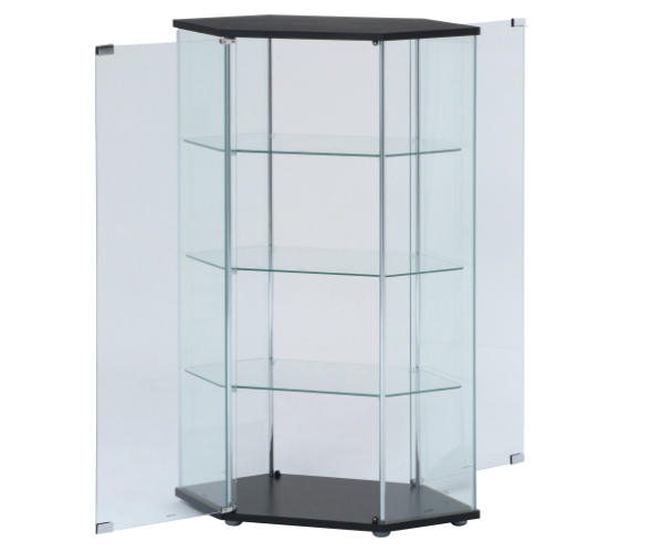 | 材質 | 天板・地板:プリント紙化粧繊維板 柱:金属(鋼) 扉板・背板・側板・棚板:強化ガラス 表面加工(柱):メッキ(クロム) 塗装:なし |