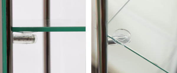 吸盤式ダボでガラスを固定 ガラス板がズレないよう、しっかり吸着して固定する吸盤付きのダボを採用しています。 |