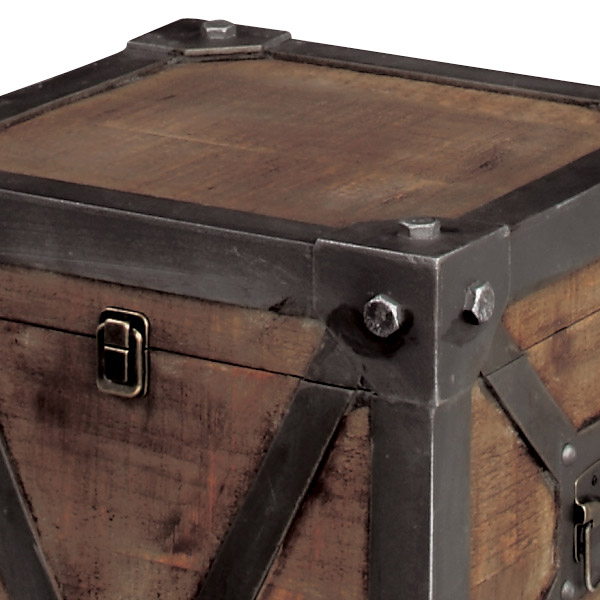 無骨なデザインと天然木で存在感のある収納ボックス