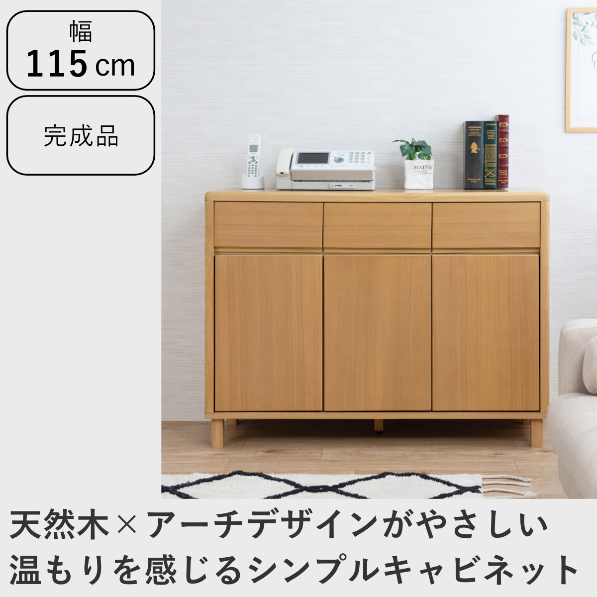 キャビネット 幅115cm 3枚扉 引出し付 天然木 タモ材