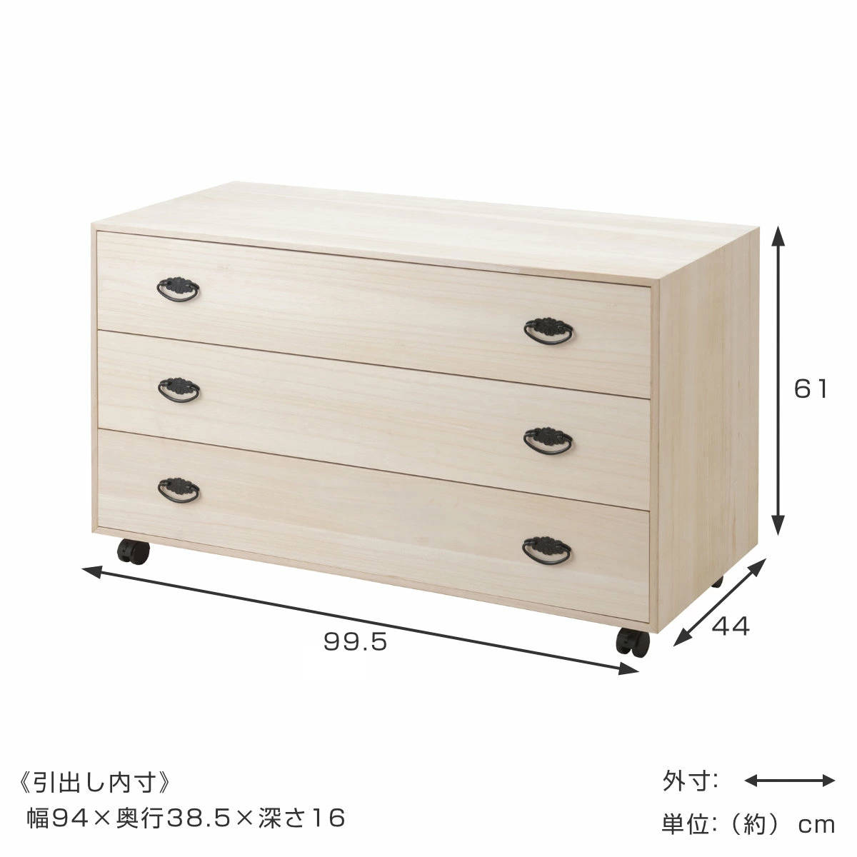 桐タンス 幅99.5cm 3段 総桐 日本製 キャスター付