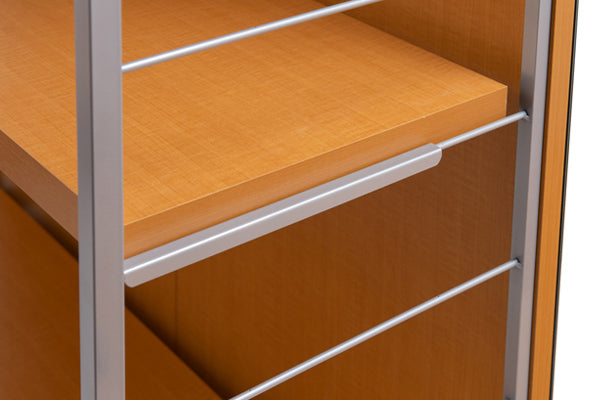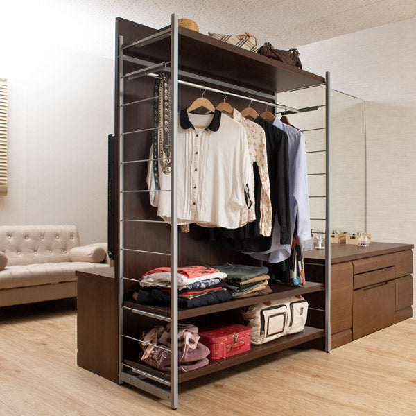 可動式のバーと棚板でお好みの高さに ハンガーバーと棚板は、14cmピッチでお好みの高さに設置できます。棚板は耐荷重20kgで強度があります。 |
