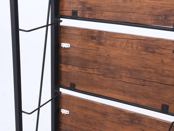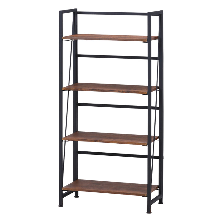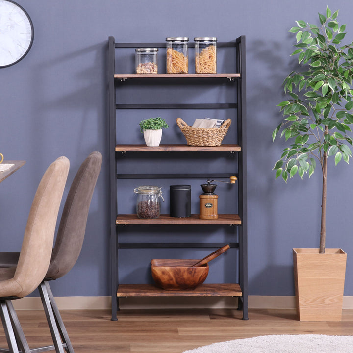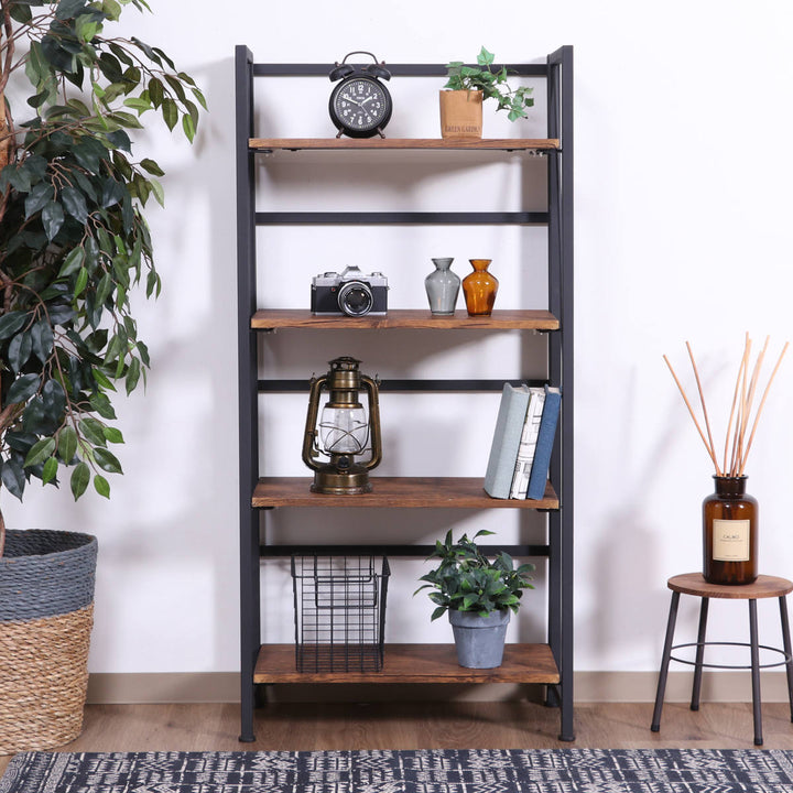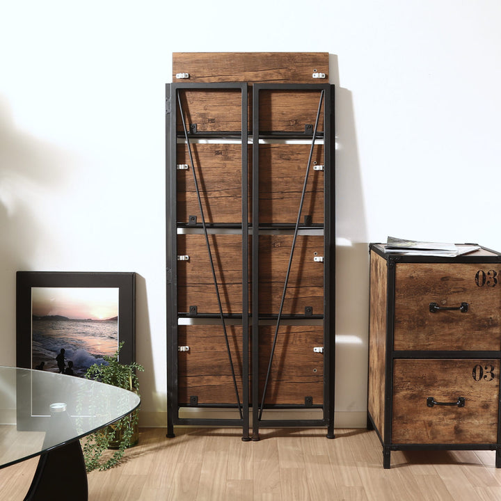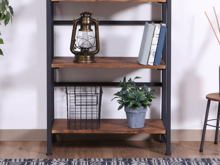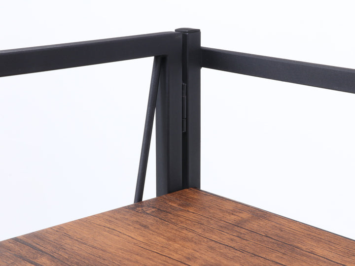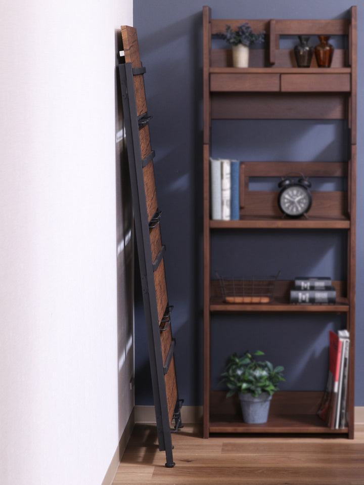 使わない時は折りたたんで収納できるフォールディングタイプの4段ラックです。オープン仕様で圧迫感を感じにくいので、空間を広く見せながら収納を増やすことができます。ブラックスチール×木目調のデザインは、お部屋のテイストを選ばずインテリアに馴染んでくれます。