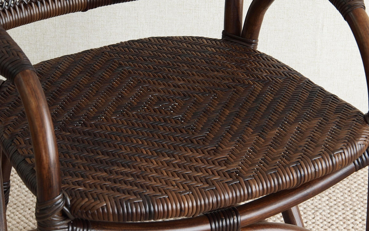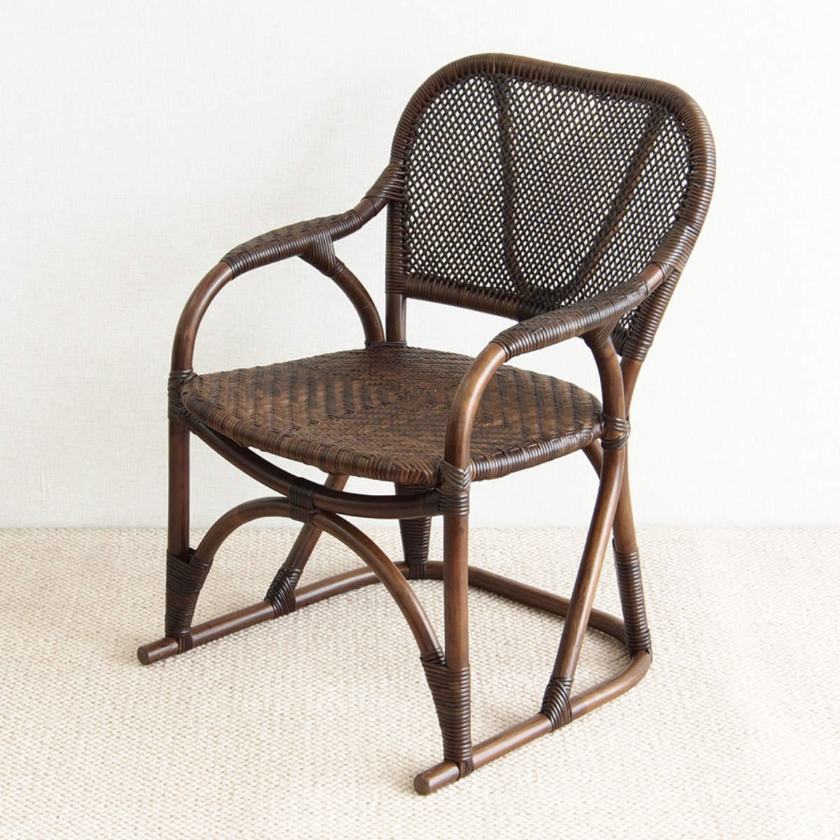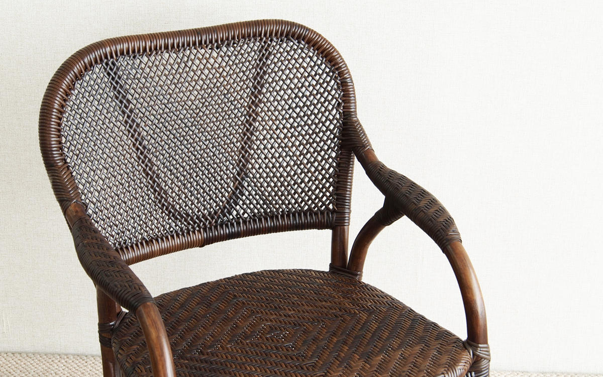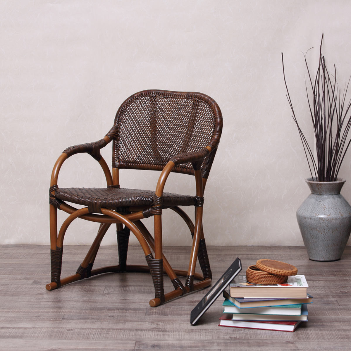 コンパクトで座り心地が良いラタンチェアです。肘掛け部分も編みこんでいるため、立ち座りの際につかまりやすいつくりです。落ち着いた色合いで、和洋問わず、どんなテイストのお部屋にも馴染むデザイン。ラタン製なので、軽くて持ち運びしやすいのも魅力のひとつです。