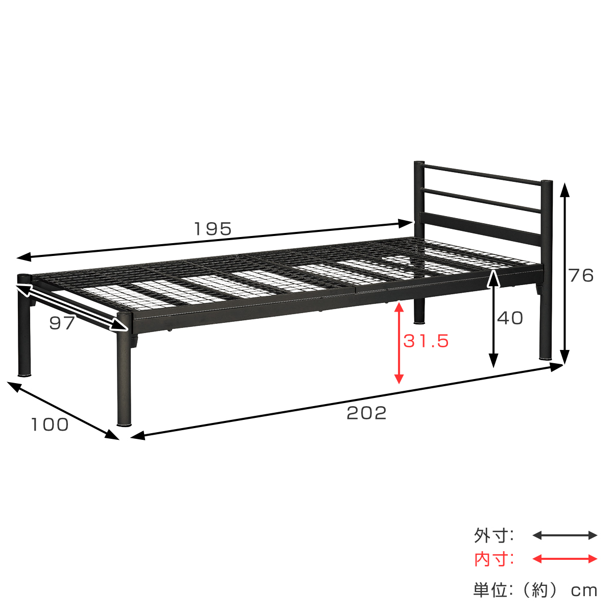 | サイズ | 約 幅100×奥行202×高さ76(cm) |