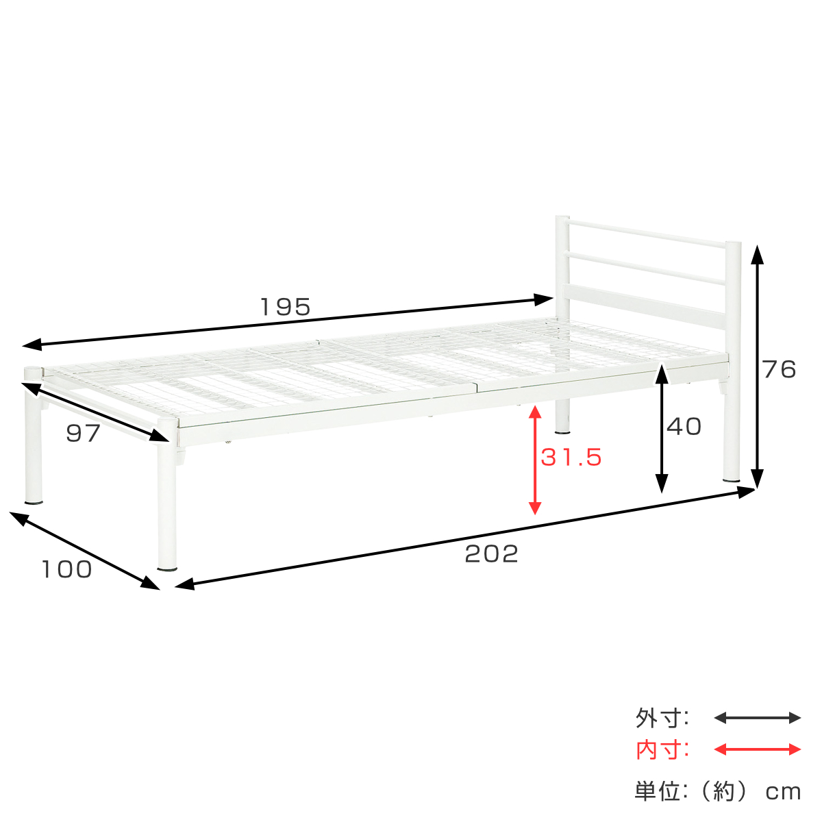 | サイズ | 約 幅100×奥行202×高さ76(cm) |