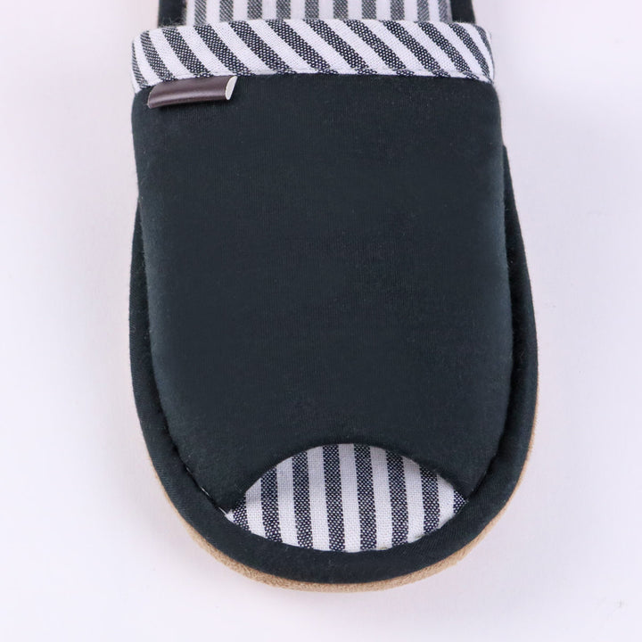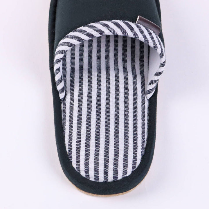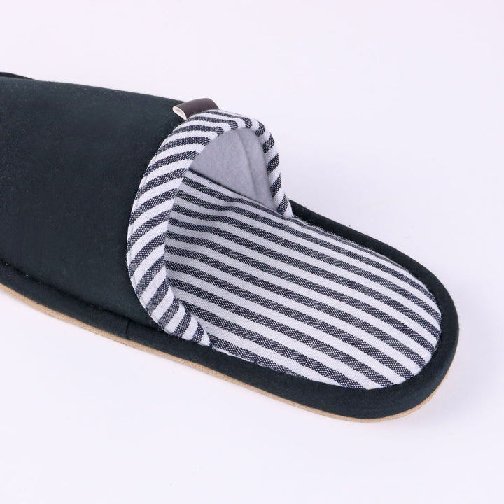 シックなカラーとストライプのデザインは、ご自宅用だけでなく職場用としてもおすすめです。合皮の無地タグがさりげないおしゃれポイントになっています。