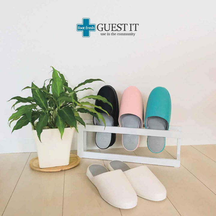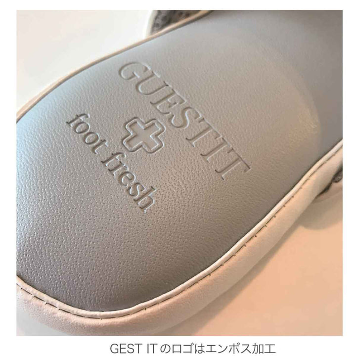 グレーの中敷は、抗菌加工済みなので不特定多数が履かれるシーンにおすすめです。かかと部分の「GUESTIT」エンボス加工も洗練された雰囲気です。