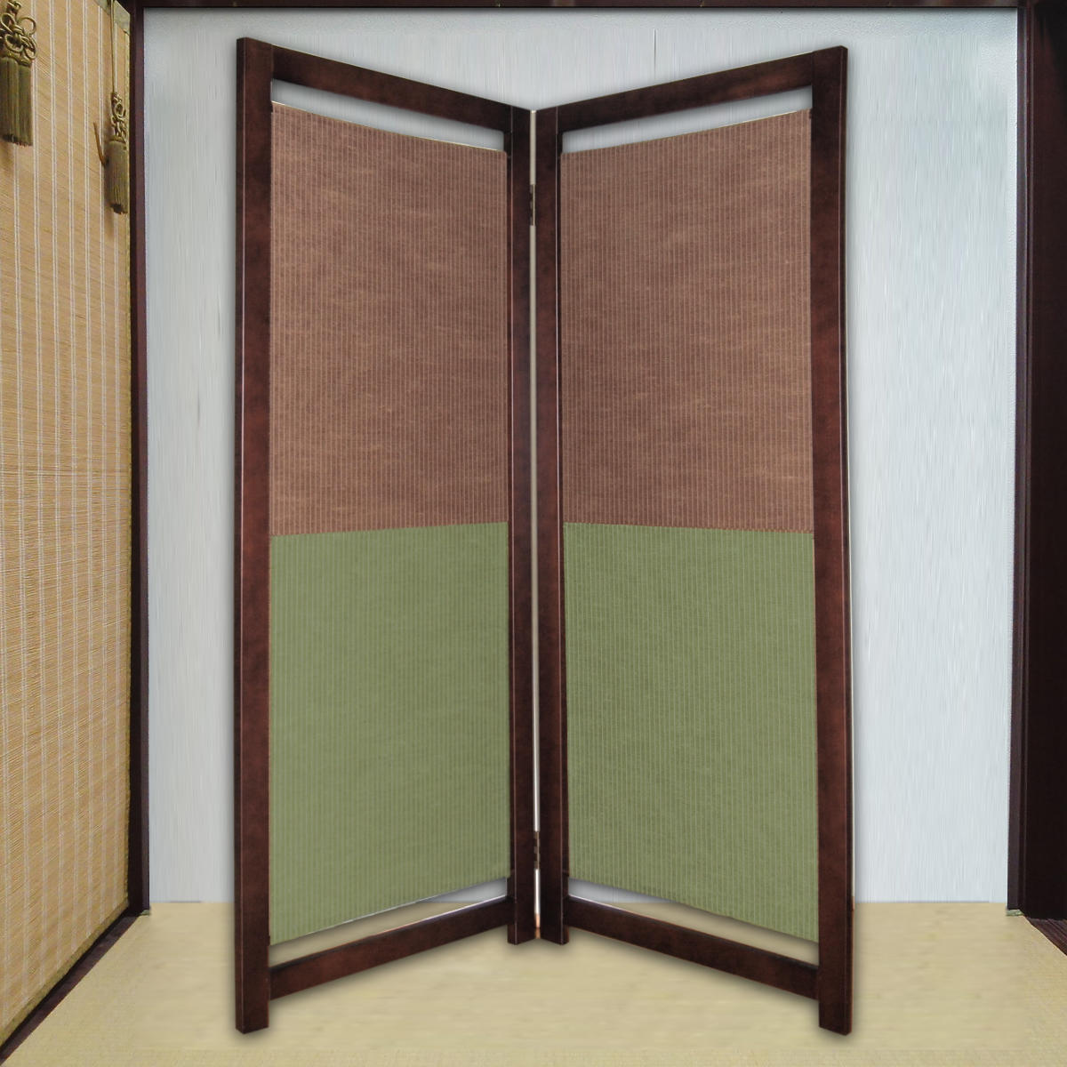 パーテーション リバーシブルパーテーション ダークブラウン&グリーン 2連 高さ165cm
