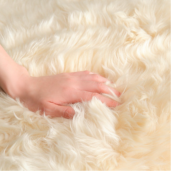 ふわふわで包みこまれるようにやさしい温もり溢れたラグです。ずっと触っていたい程の美しい毛並みは、思わずうっとりしてしまう程の高級感あふれた特別な存在感があります。毛並みの長さは最長で約10cmと厚みもしっかり確保し、至福の座り心地をご堪能いただけます。