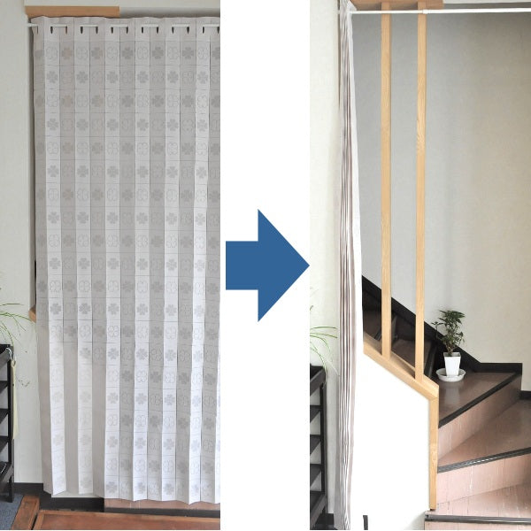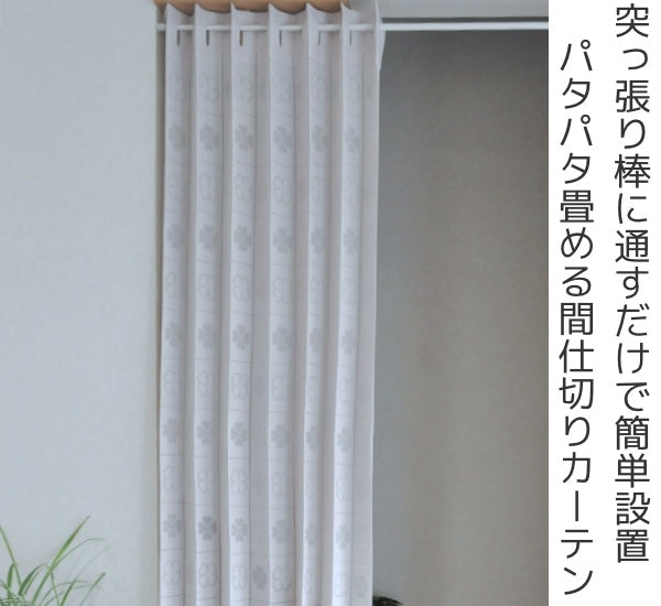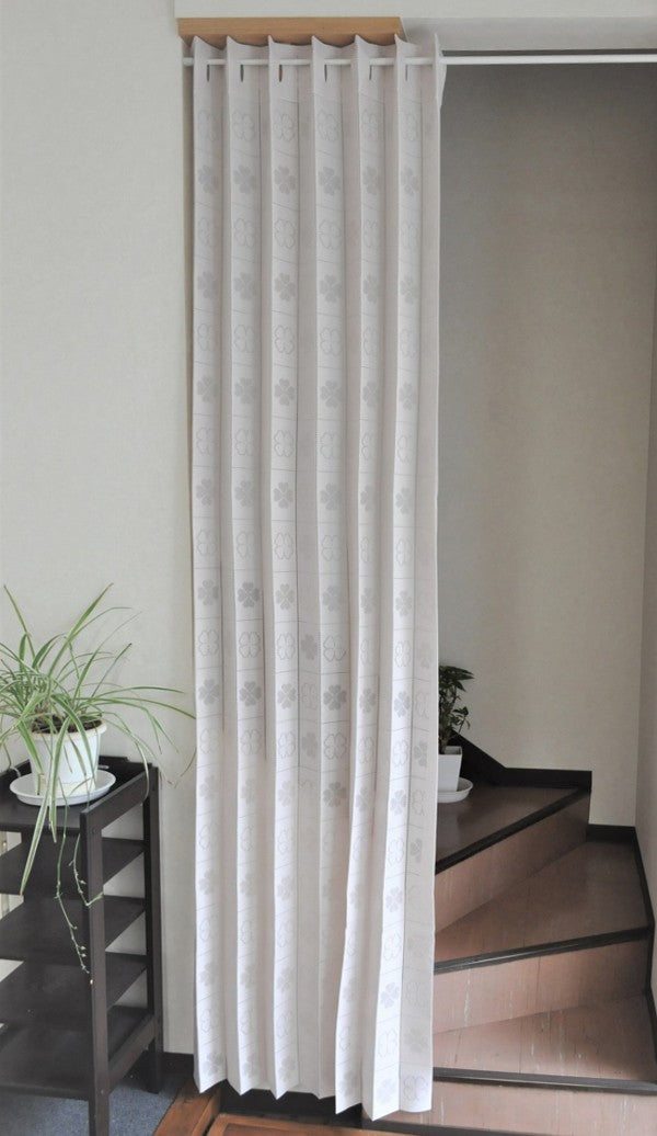 間仕切り カーテン 100×250cm パタッとたためるカーテン クローバー柄