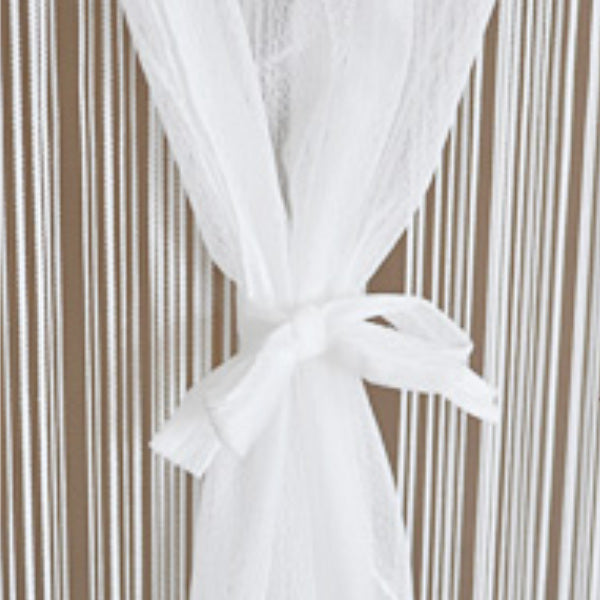 繊細で上品な風合いが出せるバリカンレースにひものれんを組み合わせています。レースとひもの組み合わせは重たくなり過ぎず、透け感とドレープ感がちょうどいいバランスを保っています。高品質な日本製です。