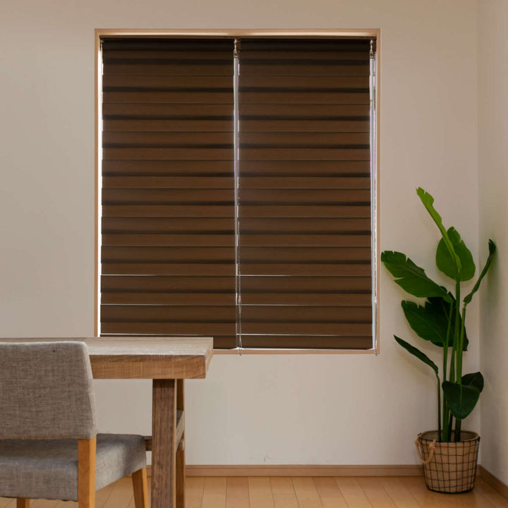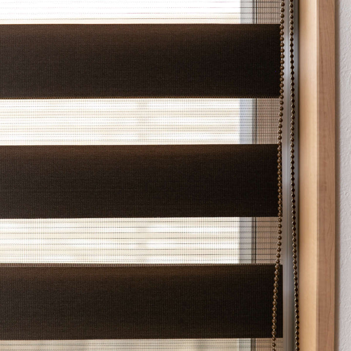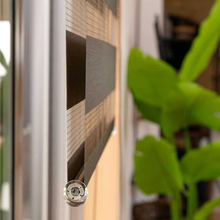ボーダー柄のスクリーンが上下に交差することにより、光の量をコントロールすることが出来ます。スクリーンを降ろす時は奥側のボールチェーンを、スクリーンを上げる時は手前のボールチェーンを引くだけで簡単に操作が出来ます。