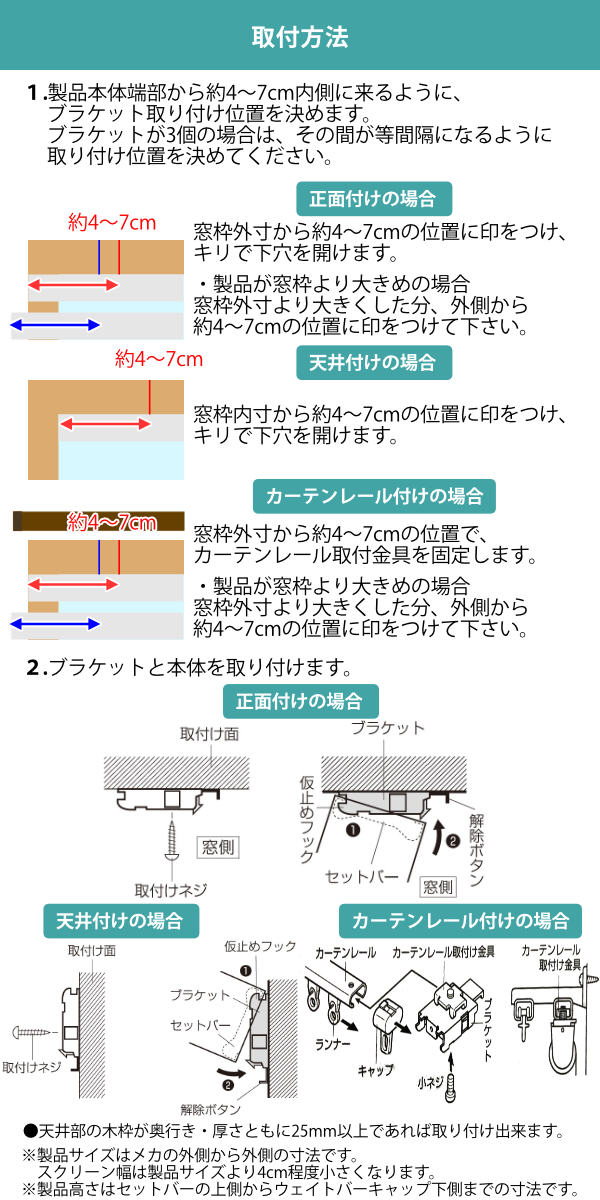 ※取り付け可能なカーテンレールはC型、角型の金属製レールになります。