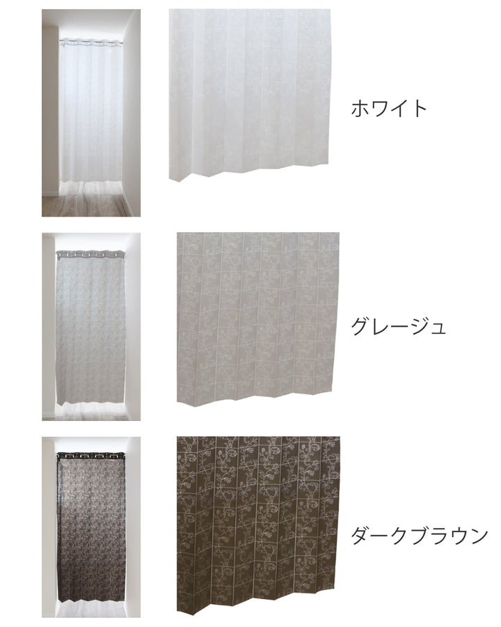 エレガントなアラベスク柄が魅力のアコーディオンカーテンです。シンプルなインテリアと組み合わせることで、上品な柄が際立ち、空間にアクセントを加えます。間仕切りや目隠しとして、キッチンとリビングの仕切りやクローゼットの扉代わりなど、見せたくないところに様々な使い方ができます。