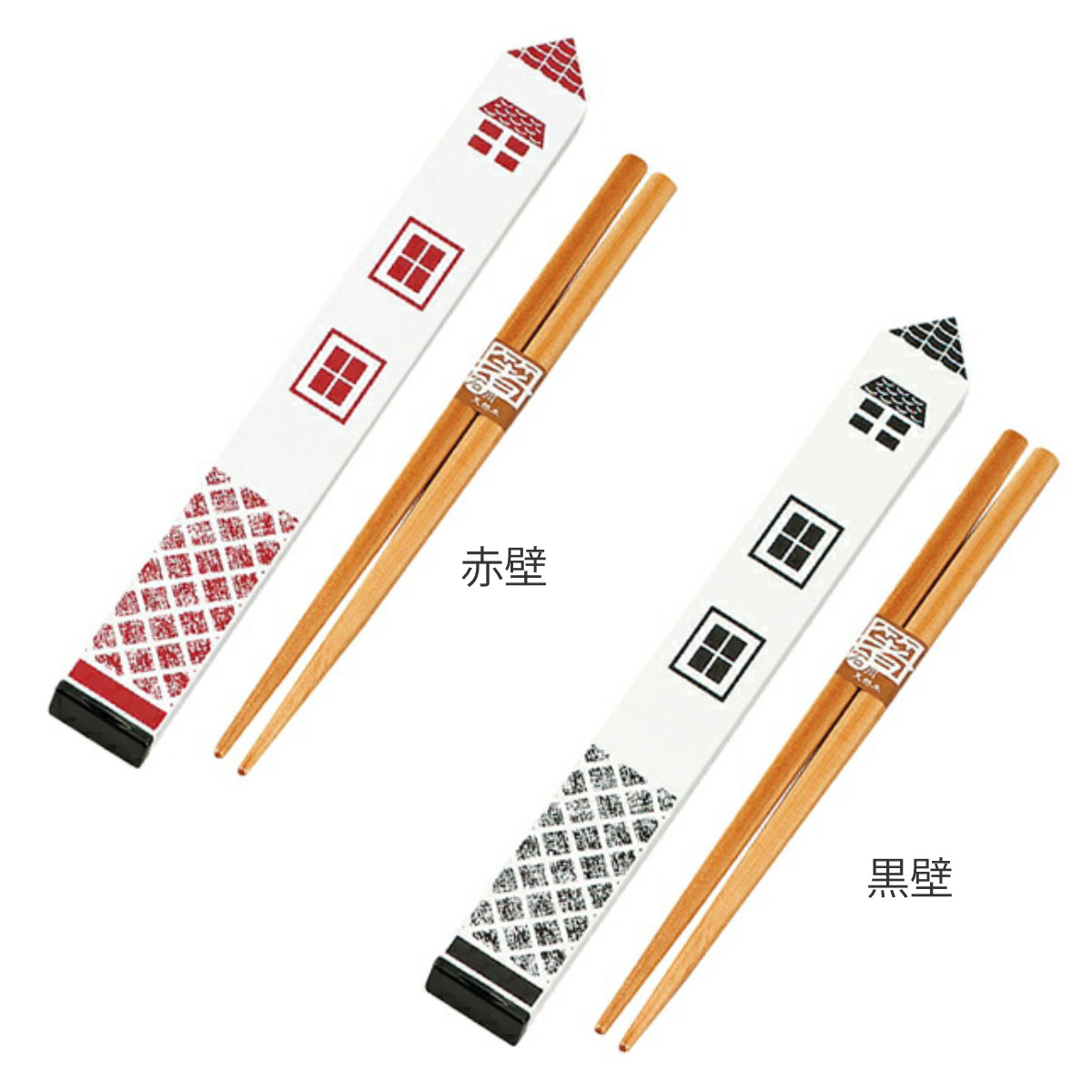 ユニークな蔵の形の箸箱と、お箸一膳のセットです。お箸はナチュラルな風合いの天然木製です。